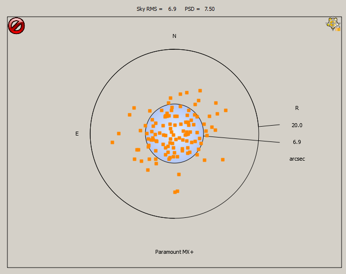 The spec for the mount is “maximum 7 arcseconds, peak to peak”. And this isn’t just marketing hype – most Paramounts do much better, and the SB support forums are full of examples of SB being horrified in the rare case when someone’s mount exceeds this spec, and of SB taking it seriously to correct it.